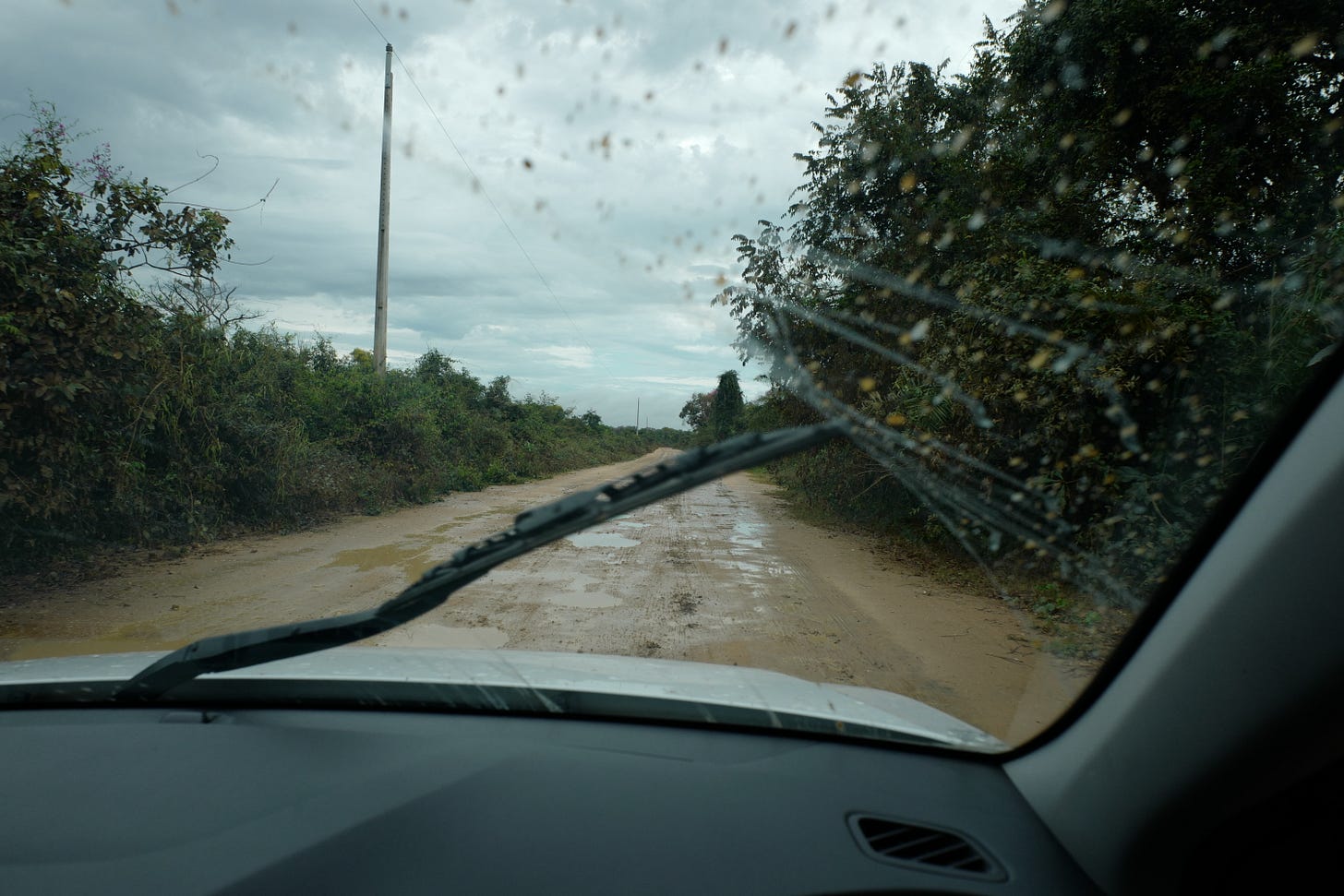 Daniel drove like a maniac. The car sliding from one side of the road to the other in what we hoped was controlled chaos. Every few minutes he would tap the dashboard mid slide, wink and say “Hilux”. Like a war zone, cars lay strewn in the road abandoned in the mud the night before. Thank god we stopped - we would never have made it.