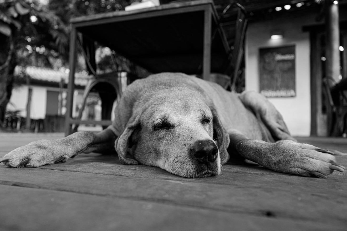 Not all dogs are strays though. Many have owners, although “ownership” here is loosely defined. Collared pets roam with the street dogs, tagging along like little siblings—begging, stealing, chasing, barking—without a leash or a watchful eye. One wonders how they feel when their holiday ends and they’re summoned back to apartments in São Paulo or Rio, forced to trade the beaches of Trancoso for the city park. I imagine them listlessly staring out of the window, longing for those halycon days of pure freedom.